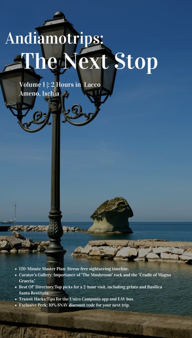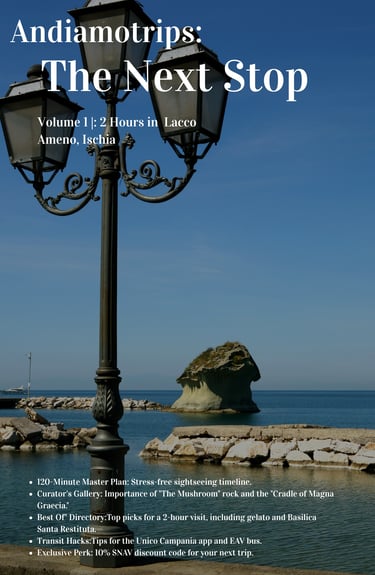 Welcome to the first issue of my new interactive e-magazine: Andiamotrips: The Next Stop! This isn't just a travel guide—it's a digital roadmap to mastering the "less is more" approach to travel in Campanial. In this debut issue, I’m guiding you on how to enjoy a perfect 2 hours in Lacco Ameno, Ischia.