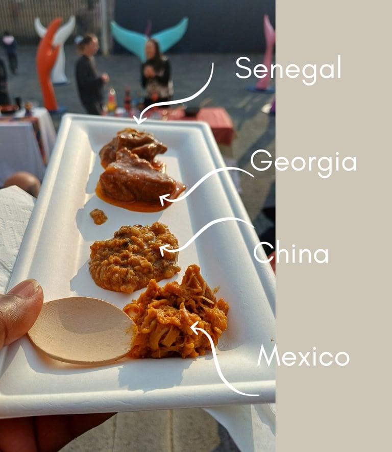 Georgia (Ostri): Presented by Elisa, this spicy beef stew incorporates traditional mountain spices like suneli (a savory blend of dried herbs) to deliver a comforting, bold flavor. Recipe here.