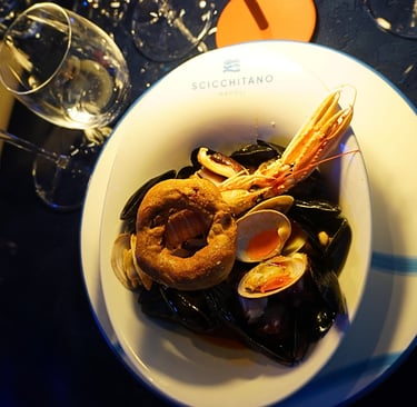 Zuppa di Cozze: A traditional spicy mussel soup that is a cornerstone of the Scicchitano family history.