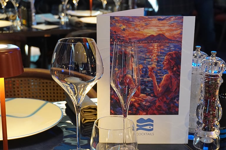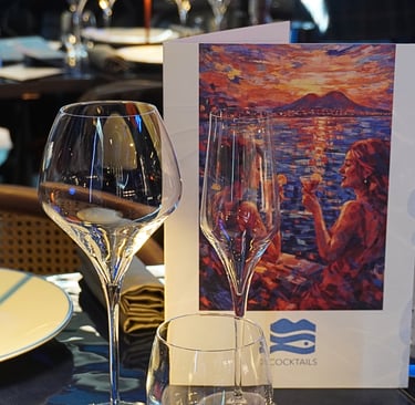 Alongside the exquisite cuisine, there is a carefully curated wine list designed to enhance and elevate the seafood dishes. You can expect exceptional selections from Campania, including Fiano di Avellino and Greco di Tufo. Special emphasis is placed on sparkling wines, with champagne taking center stage. And, yes - there is also a water list and a cocktail bar.